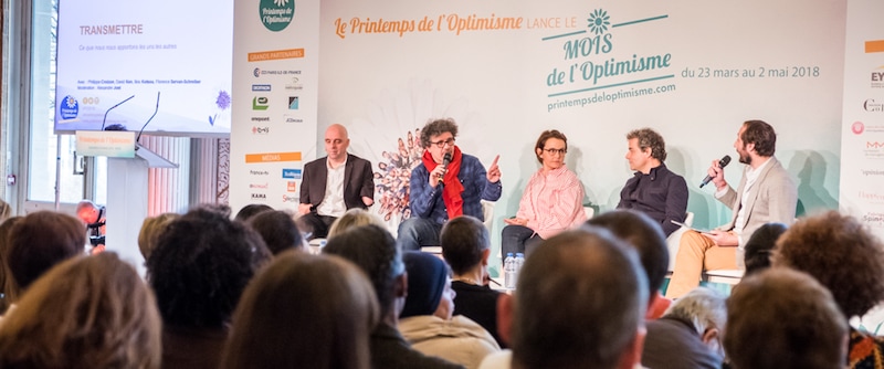 Bonne humeur garantie et débats  autour de la « transmission » au  Printemps de l’optimisme avec les merveilleux et inspirants Philippe Croizon,  Florence Servan-Screiber, Ilios Kotzou et  Alexandre Jost de la Fabrique Spinoza (think-tank)Emotion lors de la présentation du reportage sur les actions de l’équipe du LOLPROJECT à l’hôpital  (de Carl Boisson)Bravo à la formidable équipe du Printemps de l’optimisme de l’infatiguable Thierry Saussez pour l’organisation de cette 5em édition !